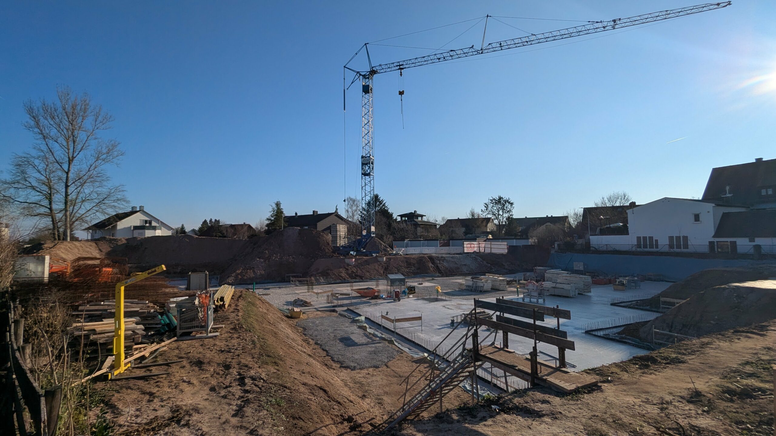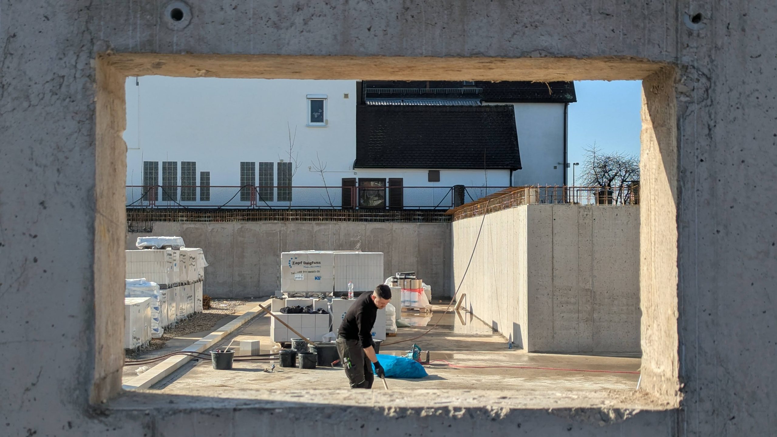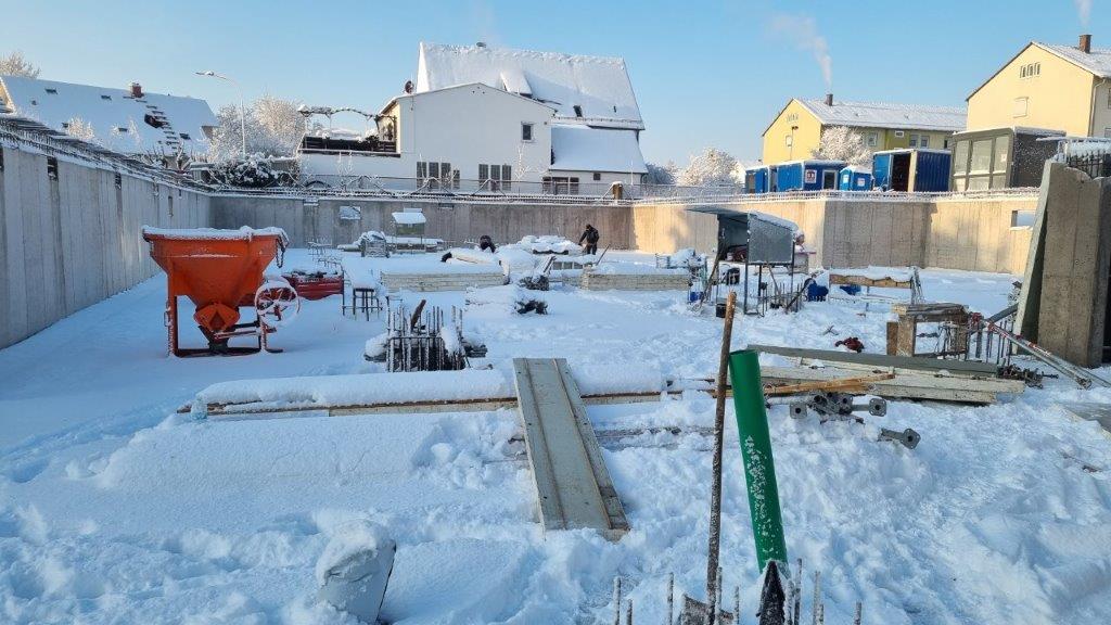 Ein wichtiger Meilenstein im Keller ist geschafft: Die massiven Stahlbeton-Außenwände stehen fest an ihrem Platz!